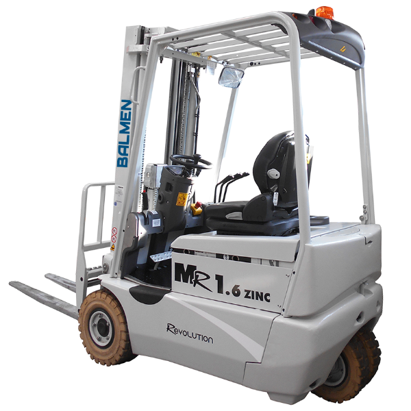 La serie MR ZINC incluye montacargas eléctricos de 3 y 4 ruedas, con capacidades de carga de 1,600 kg a 4,999 kg.